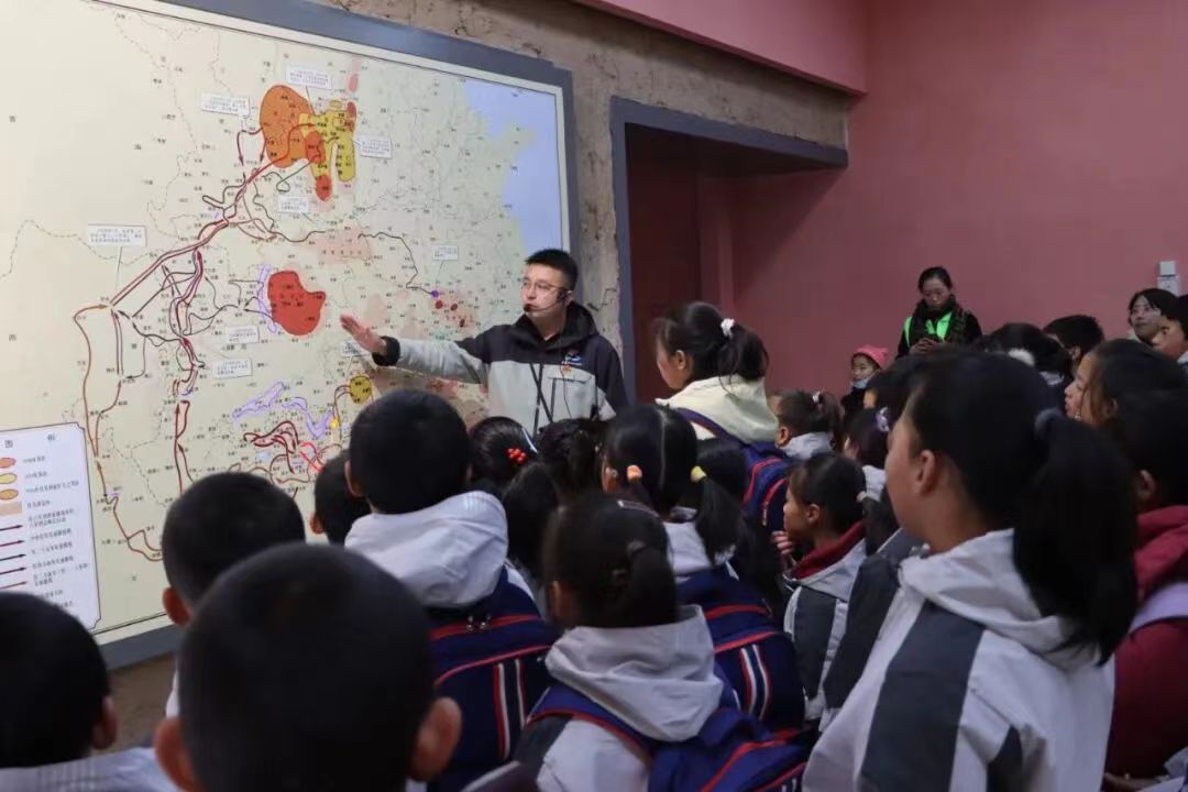 捐赠仪式后,同学们在固原市宁南爱心公益社志愿者的带领下,前往六盘山红军长征景区开启红色研学之旅。在纪念馆内,一幅幅珍贵的历史照片、一件件实物展品、一个个生动的战斗场景被复原,让他们仿佛穿越时空,真切感受到红军长征途中的艰辛与不易。讲解员结合史料,生动讲述了红军翻越六盘山的英雄事迹和革命先辈的奋斗历程,引导孩子们铭记红色历史、传承革命精神。学生们列队肃立,聆听革命故事,爱国情怀与责任担当在心中悄然扎根。