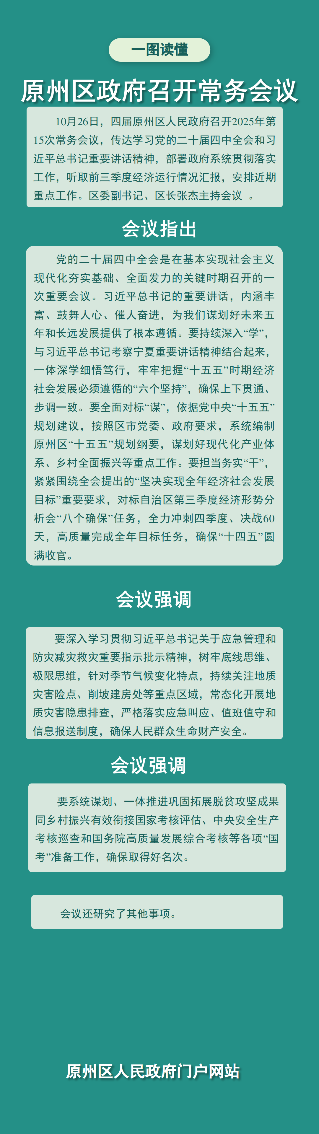 | 标 题: | 四届原州区人民政府召开2025年第15次常务会议 | ||