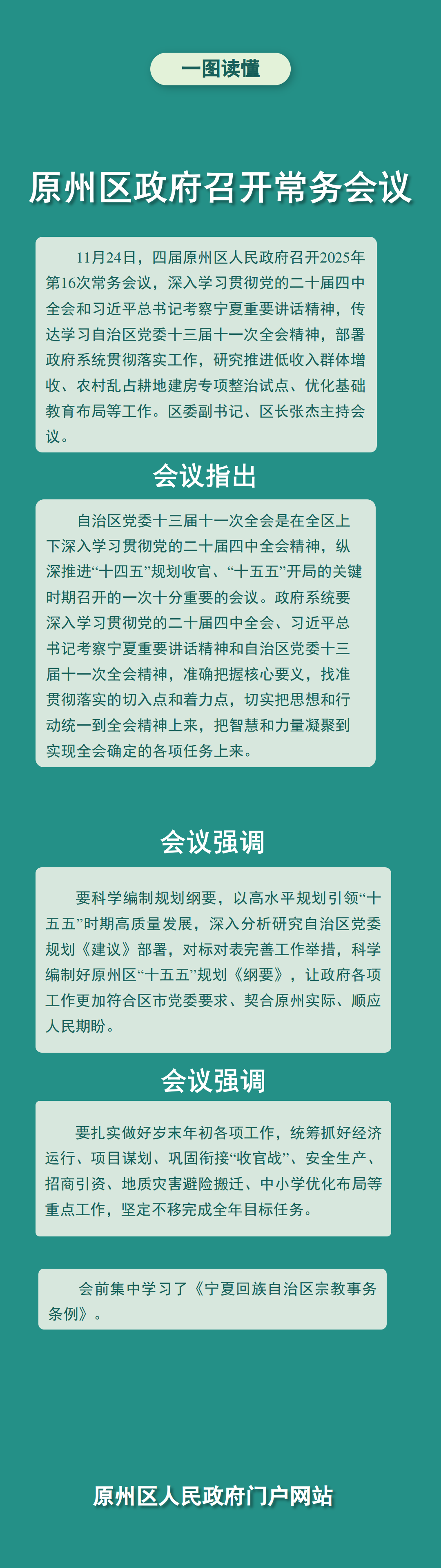 | 标 题: | 四届原州区人民政府召开2025年第16次常务会议 | ||