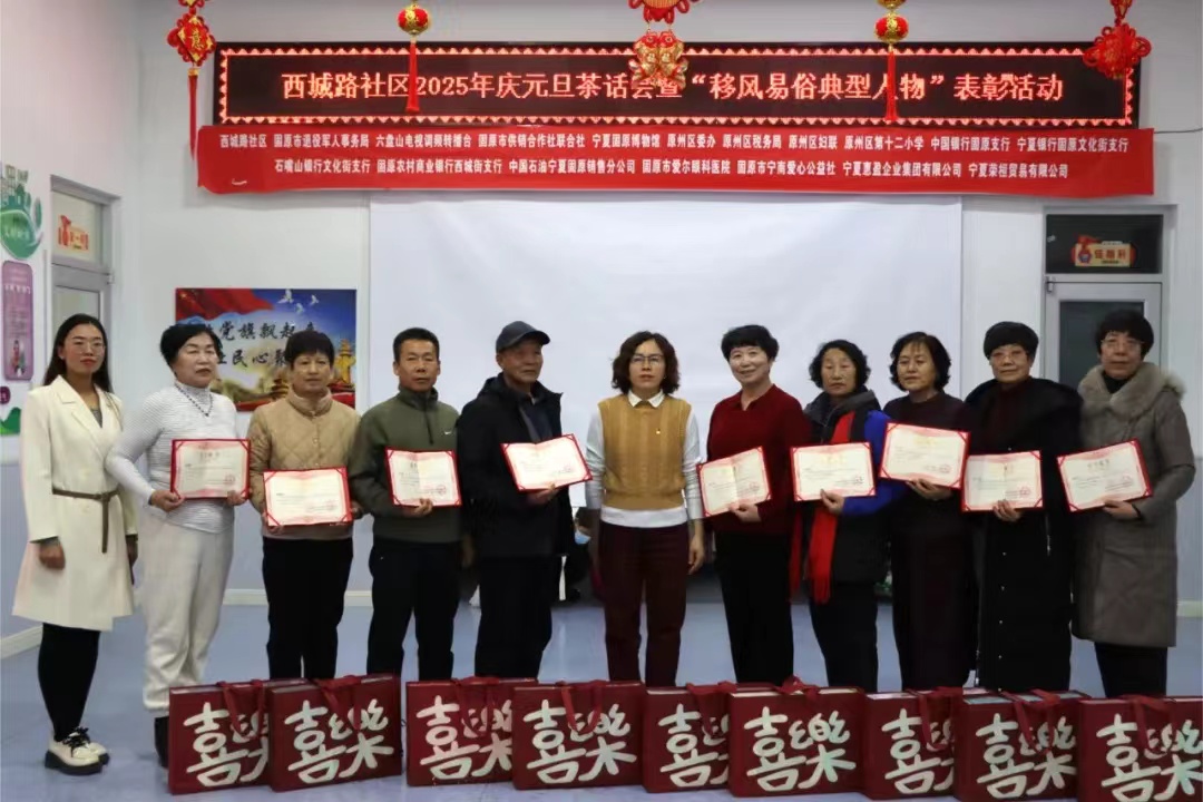 在迎新年、庆元旦之际,西城路社区还对2名“优秀共产党员”、6名“最美志愿者”、1个“文明家庭”,2名“好公婆”、2名“好媳妇”、1名“好邻居”等移风易俗先进典型人物进行了集中表彰奖励。