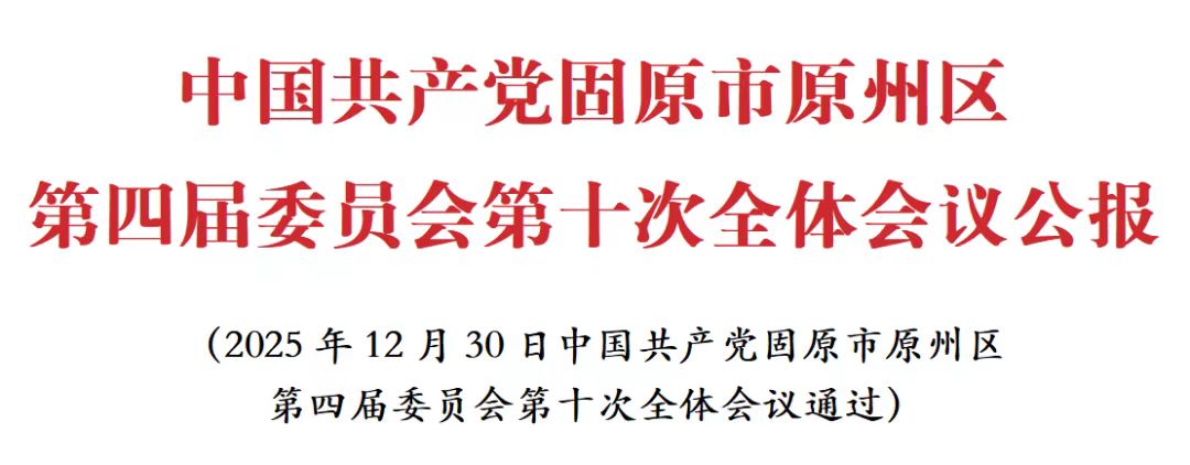 中国共产党固原市原州区第四届委员会第十次全体会议,于2025年12月30日召开。
