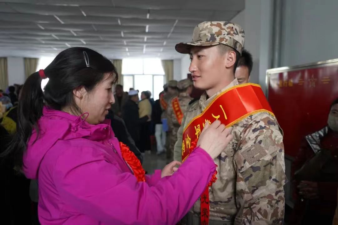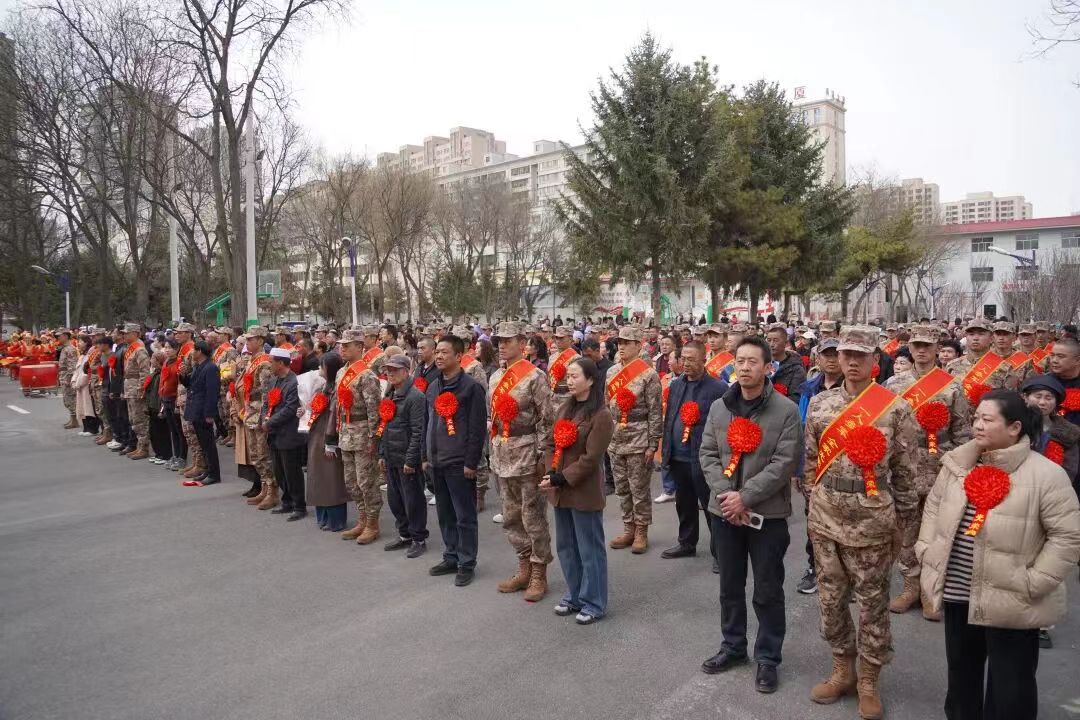 活动现场锣鼓喧天,一批怀揣报国热忱、满怀青春壮志的优秀青年,身着戎装、胸佩红花,即将告别家乡亲人,奔赴军营开启强军征程,用青春与热血践行保家卫国的铮铮誓言。