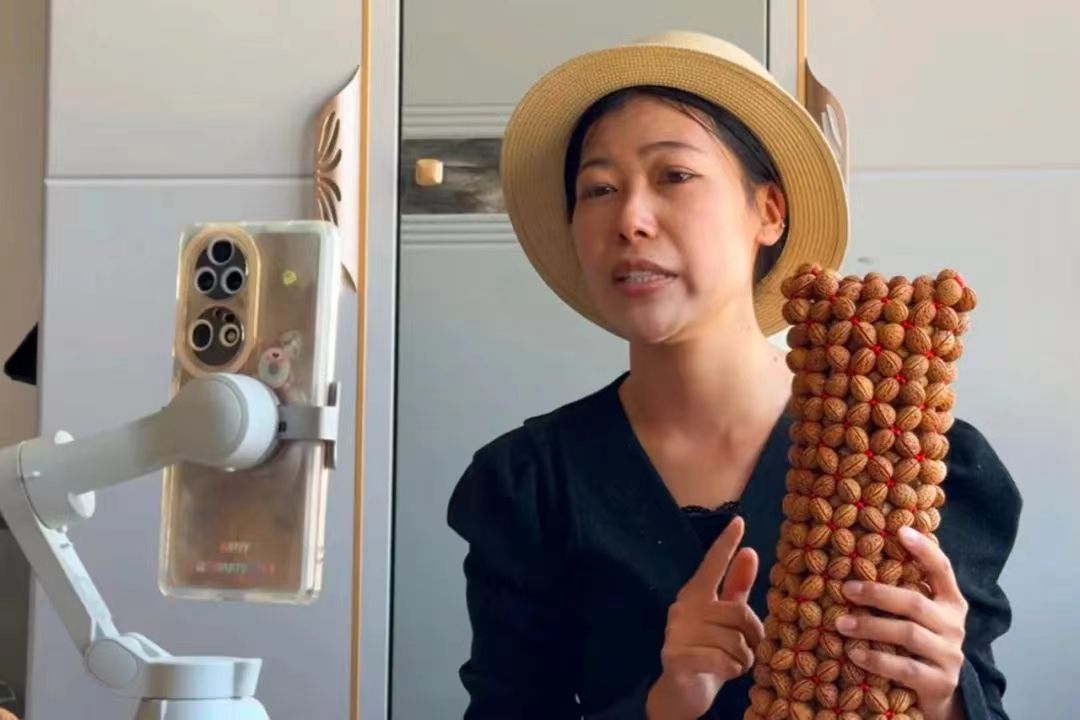 这些曾经只能当柴火烧的山桃核,如今正在村民手中焕发出前所未有的光彩。“以前用火烧红的铁棍钻孔,一小时只能钻四五斤,2018年买电钻后效率提升50%,现在一小时能钻十斤!”马海花抹去额头的汗珠,脸上洋溢出笑容。 南城村的桃核产业崛起并非偶然。依托须弥山景区游客,这个传统村落找到了农文旅融合发展的金钥匙。村民杨佳的直播间里,上千人同时在线观看桃核工艺品的制作过程。