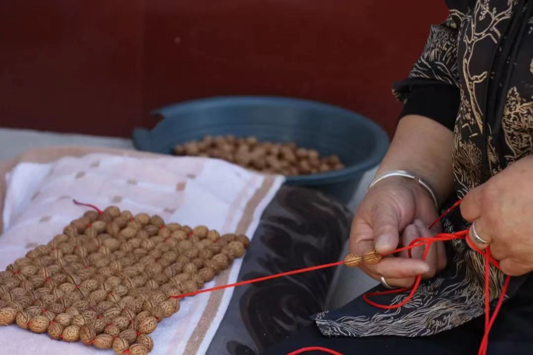 游客在采摘园体验农趣后,到农家乐品尝特色美食,临走时带上桃核枕头、车垫——一条“吃住游购”的完整消费链自然形成。2023年,仅红梅杏采摘就吸引游客5000人次,带动销售收益360万元。 南城村的创新发展模式最动人之处,在于真正实现了联农带农、共同富裕。全村120名老人、妇女通过桃核加工实现居家就业,户均年增收2万元以上。杨佳等年轻创业者通过直播带货,既传承了传统手艺,又开辟了新的销售渠道。“现在不再担心产品销路了,通过手机就能连接全国市场。”正在直播间教授桃核编织技艺的杨佳说。