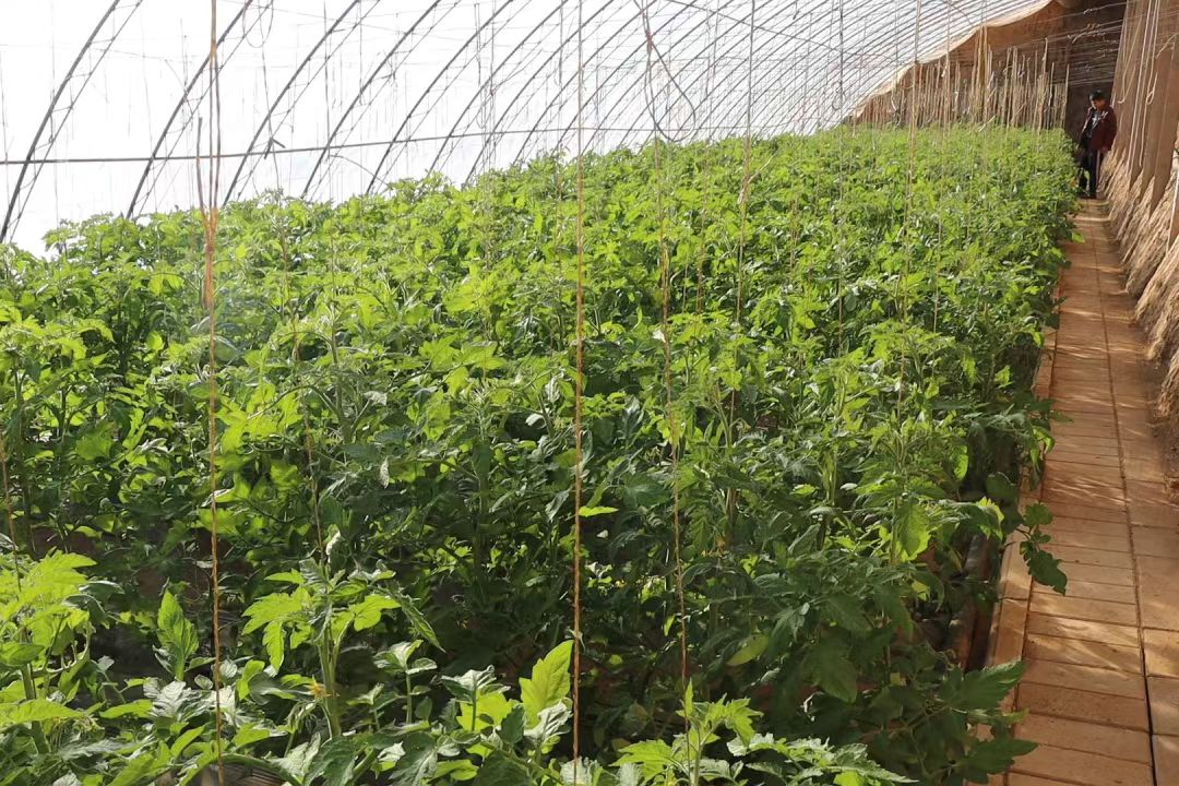 在村民马德发的西红柿大棚里,一行行植株整齐挺立,绿叶间已挂满果实。“今年我们引进了优质西红柿苗,一个棚大约种900棵。种植期间特别注意病虫害防治,现在长势非常好。”马德发一边查看秧苗,一边高兴地介绍,他算好了要赶在春节前集中上市,卖个好价钱。