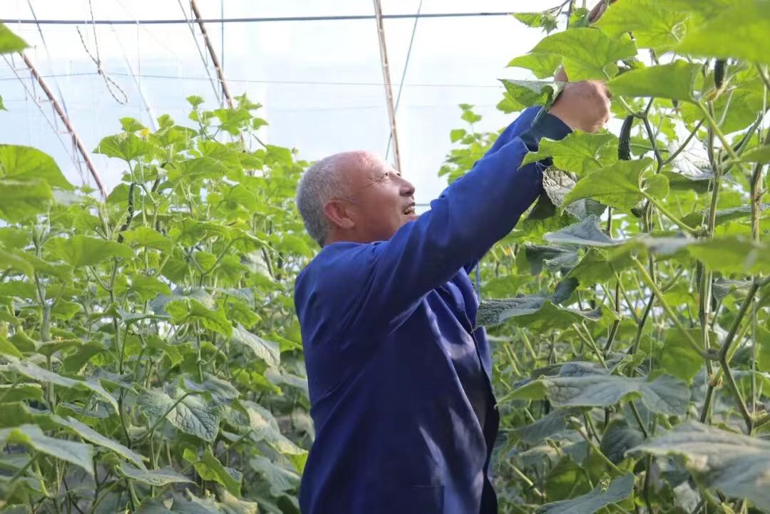 据马园村党总支书记李荣强介绍,在联农带农“四项机制”统筹推进下,产业发展活力持续释放,生产高峰期,单栋温室日均采摘黄瓜135公斤,新鲜果蔬直供本地商超、菜市场,单棚月纯收入达3000元。设施蔬菜产业不仅带动本村近200户农户稳定增收,还吸纳周边群众就近务工,生产高峰期用工人数达三四百人。“不用外出奔波,在村里大棚务工,一天能挣150元,一年下来能攒两万多元,顾家增收两不误,日子越过越红火。”正在务工的村民马富梅满脸笑意。