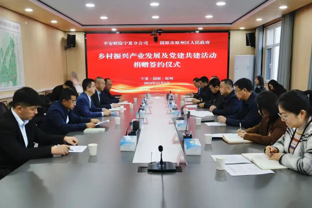 11月1日,原州区人民政府与中国平安财产保险股份有限公司宁夏分公司乡村振兴产业发展及党建共建活动捐赠签约仪式举行。平安财险宁夏分公司党委副书记、副总经理常志杰,平安财险宁夏分公司固原中心支公司总经理袁海波,区委常委、副区长吴铁军参加签约仪式。
