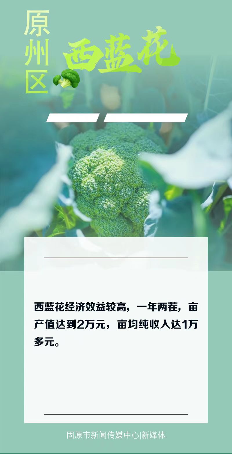 西蓝花经济效益高、生长周期短,种下去2至3个月就可以采摘出售、获得经济效益。“一年能种两茬,亩产值预计达到2万元,亩均纯收入达到1万多元,今年是近年来增产增收最多的一年,也是近十年来蔬菜价格最好的一年。”原州区农业技术推广服务中心副主任白生虎感叹道。