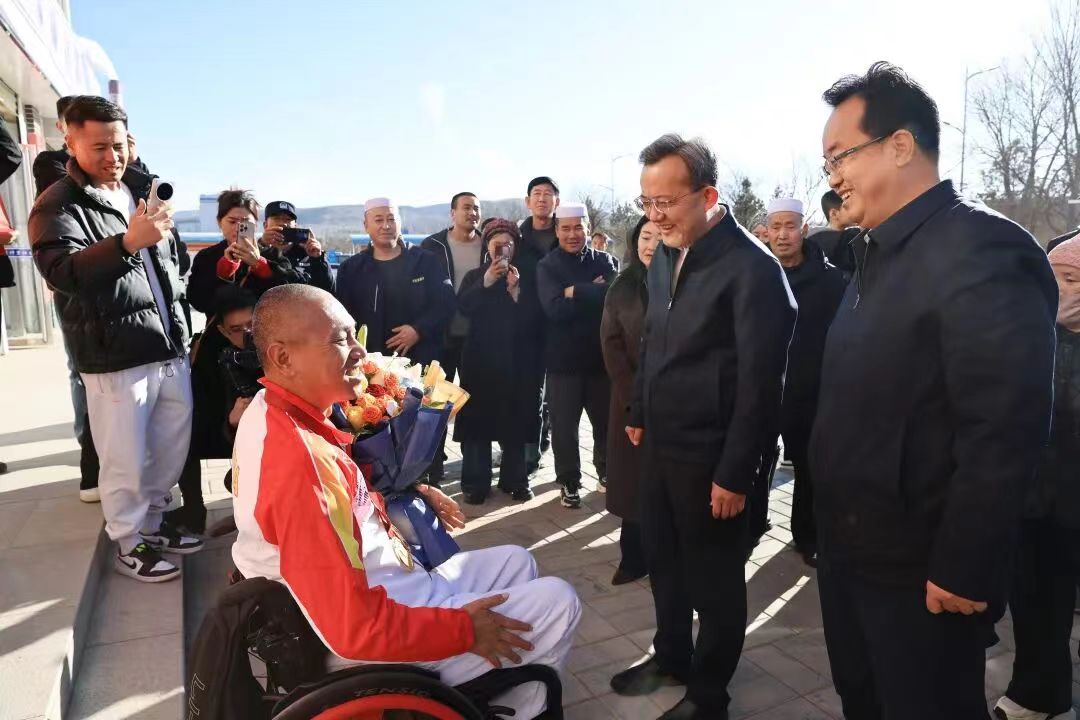区领导与马占贵及其家人亲切交谈,详细了解他的身体状况、生活情况以及日常训练和比赛情况,高度赞扬马占贵阳光自信的精神风貌和身残志坚、勇于拼搏的精神,并勉励他继续保持积极乐观的生活态度和刻苦训练的劲头,争取在未来赛事中再创佳绩,激励更多人在各自的人生赛道上奋发进取、勇毅前行。区领导表示,马占贵的成绩来之不易,不仅为宁夏赢得了荣誉,更以实际行动诠释了原州儿女自强不息、奋勇争先的精神风貌。区委、区政府将一如既往关心、重视残疾人事业,进一步完善社会保障制度,统筹各方资源,不断改善康复条件,搭建更好的平台,努力为残疾人创造更好的发展条件,让每一位残疾人都能感受到社会的温暖。全区广大干部群众要以马占贵为榜样,团结一心、实干争先,奋力谱写中国式现代化原州建设新篇章。(来源:原州区融媒体中心 记者:喇小龙 )