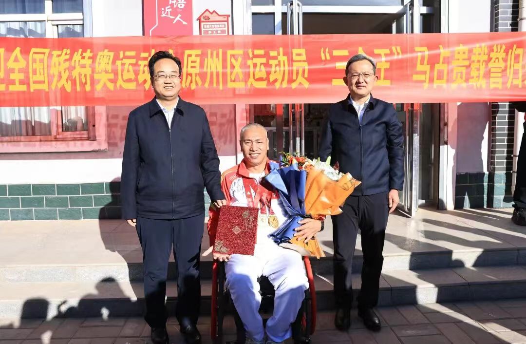 12月9日,全国第十二届残疾人运动会暨第九届特殊奥林匹克运动会田径项目赛场率先传来捷报,原州区籍运动员马占贵在男子铅球F52级决赛中,以6.6米的成绩稳稳拿下冠军,为宁夏代表团斩获田径项目首金,实现了赛事“开门红”。12月11日,马占贵再度掀起夺金热潮,先后在男子标枪F52级、男子铁饼F52级比赛中摘得金牌,以三金加身的成绩,成为宁夏代表团本届残特奥会上“三金王”。