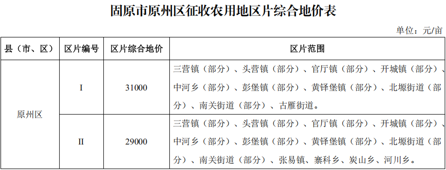 3.直接依据:《原州区人民政府关于公布原州区征收农用地区片综合地价的通知》(原政规发〔2026〕1 号)。