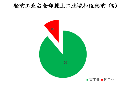 1-6月份,全区重工业累计实现工业增加值3.2亿元,占规模以上工业增加值的90.0%,同比下降5.0%;轻工业累计实现工业增加值0.4亿元,占规模以上工业增加值的10.0%,同比下降4.1%。