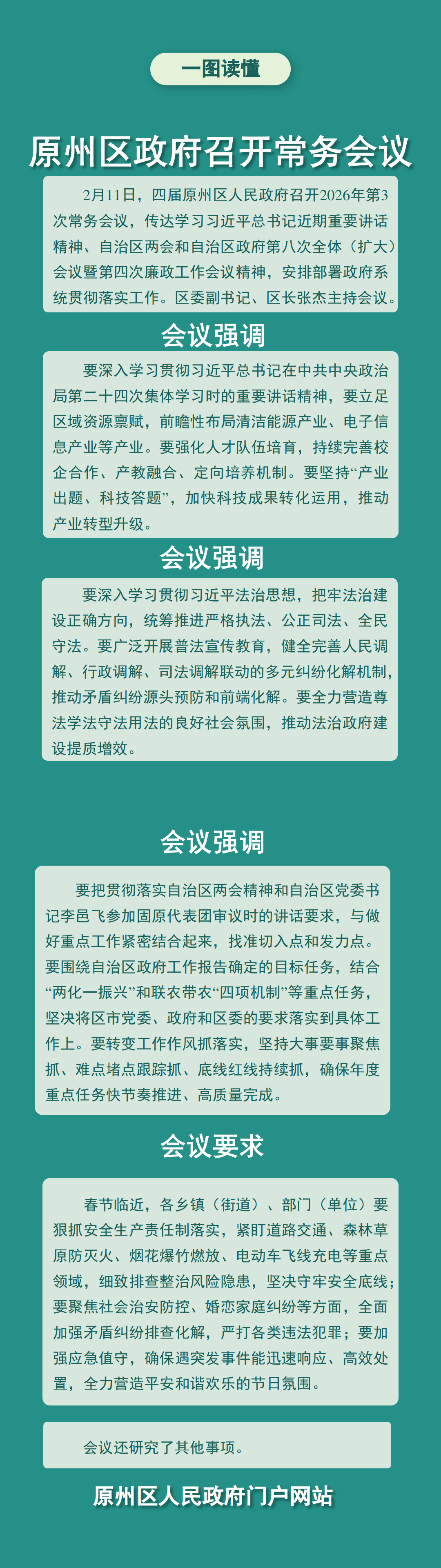 | 标 题: | 四届原州区人民政府召开2026年第3次常务会议 | ||