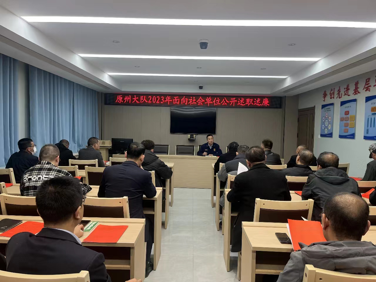 为进一步拓宽社会监督渠道,深入推进消防监督执法廉政建设,真实广泛地听取社会单位代表对全区消防工作的意见和建议,客观公正评价大队防火监督执法工作,近日,原州区消防救援大队面向社会单位公开述职述廉。