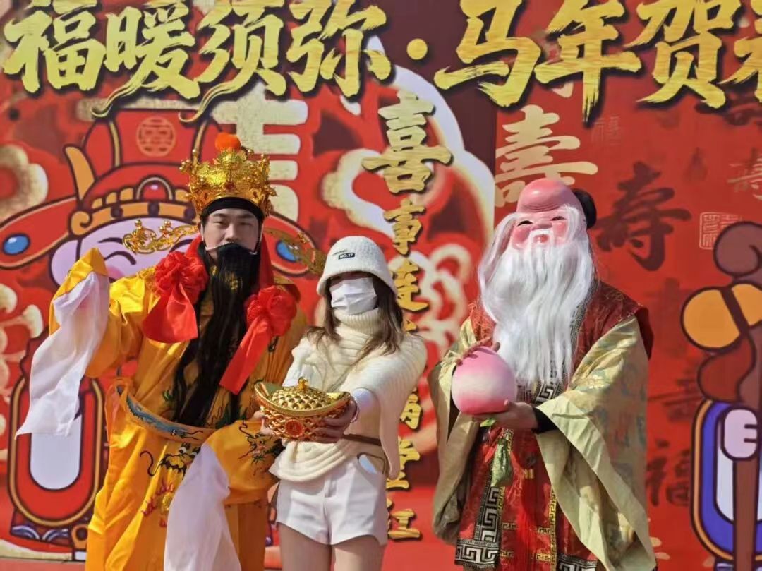 步入景区,浓郁的新春氛围扑面而来。“福禄寿喜财”五福祥瑞与游客零距离互动送福、合影打卡,一步一景皆充满新春氛围感;投壶、套圈、趣味投掷、新春抽签等传统游园项目轮番开启,老少皆宜的趣味互动,让游客在游戏中重拾传统年趣,收获满满欢乐与好运。