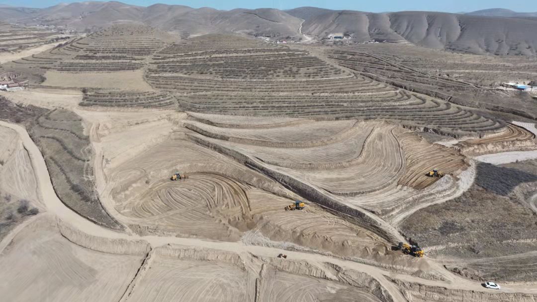 3月19日,记者走进原州区寨科乡蔡川村高标准农田建设施工现场,机器轰鸣声不绝于耳,数台推土机正穿梭在田间,平整土地、修整边坡。已平整完的高标准农田从山脚盘绕到山顶,层层叠叠、高低错落,犹如一幅壮美的画卷铺陈眼前。