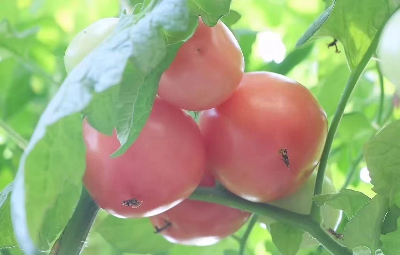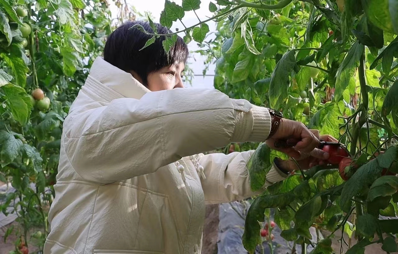 游客们正在大棚采摘,不多时,袋中便装满了圆润鲜亮的西红柿。种植户樊小芹介绍,“我这个大棚西红柿正好在春节期间熟了,前来采摘的人也很多,一斤四五块钱,每一棚西红柿的年产量在一万六千多斤左右。”