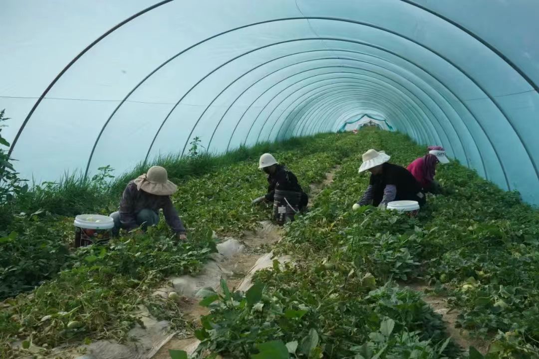 据了解,该合作社今年共种植香瓜80余亩,全部采用冷棚种植模式。在种植过程中,合作社严格把控种植标准,遵循绿色种植理念,确保香瓜的品质和口感。“今年我们的香瓜产量特别好,一棚(半亩地)能产2000多斤,平均价格8元一斤,一棚大概能卖到1.6万元左右,除去成本净收入能达到1万元。”南虎军自信地说。 香瓜的成熟上市,不仅带来了可观的经济效益,还为当地村民提供了一定的就业岗位。在采摘现场,数十名村民分工明确,忙着采摘、分拣、装箱,脸上洋溢着丰收的喜悦。目前合作社在香瓜种植、管理、采摘等环节,已累计带动本村20余户村民就近就业增收。