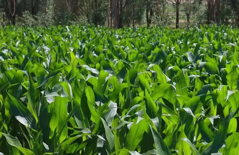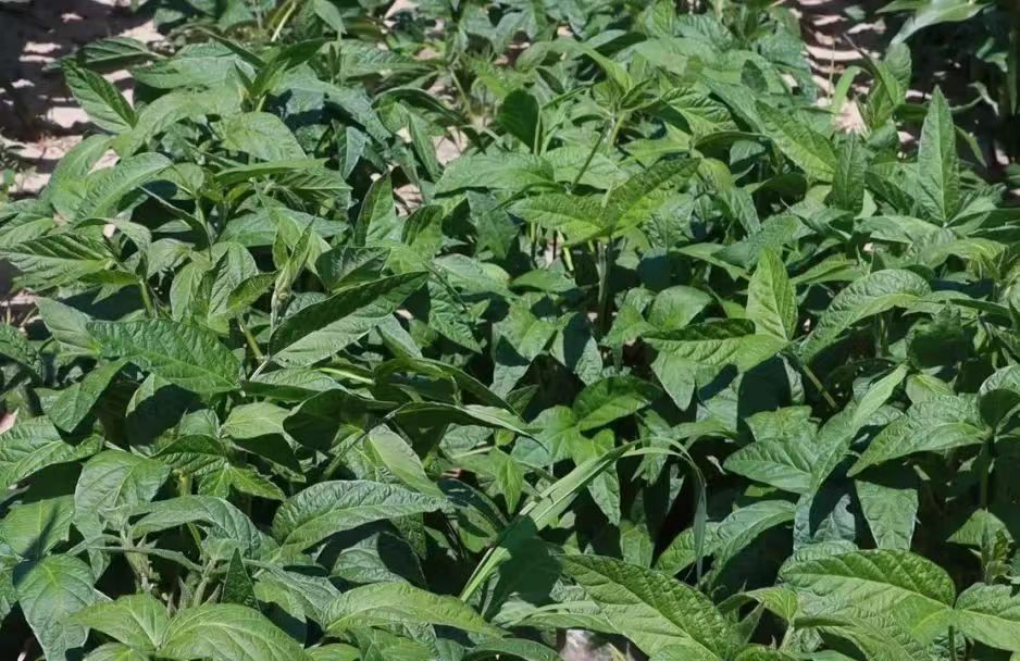 走近田野,一株株玉米整齐挺拔、长势喜人。而在玉米行间,大豆的叶子层层叠叠,一些枝头已经挂上了嫩绿色的豆荚,像一串串小巧玲珑的翡翠,饱满而有光泽。