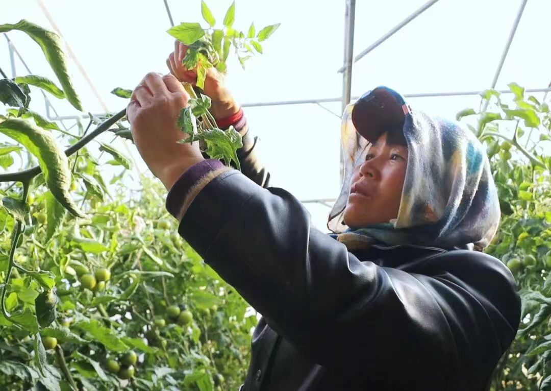 村民史奋梅正小心翼翼地穿梭在藤蔓间,进行掐枝打杈。“我一年四季都在这里干活,冬天在棚里面种西红柿,夏天负责育苗。一年能挣4万到5万块钱。自从到这里来,生活条件也好了,也有地方打工了!”像史奋梅一样,许多当地村民在这里实现了稳定就业增收。