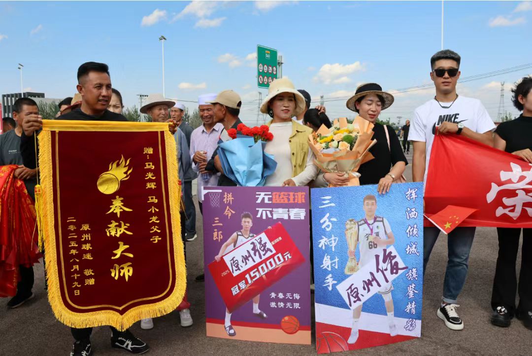 “到了、到了!”随着载有冠军奖杯和队员的车辆缓缓驶出原州区中河乡硝口高速收费站,等候多时的人群瞬间沸腾。8月19日,2025“生生不息”首届县(市、区)共同富裕篮球联赛(县BA)全国总决赛冠军原州代表队载誉归来,近千名原州区干部群众夹道欢迎,用最热烈的方式迎接健儿们回家。