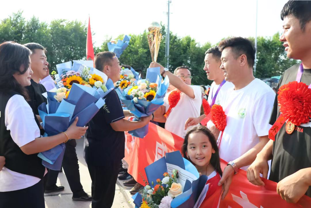 迎接现场,锣鼓声震耳欲聋,礼炮划破天际,老人拄着拐杖踮脚眺望,孩童举着国旗蹦跳欢呼,群众拉起的“冠军回家、原州儿子娃娃攒劲”等横幅格外醒目。此起彼伏的呐喊与掌声,将现场汇成欢乐的海洋,无数手机镜头对准这激动人心的时刻。 原州区有关部门负责人向队员们献上鲜花和奖品。干部群众代表轮流上前为队员挂红、致谢,众人共同举起冠军奖杯合影留念。队员们走进人群,与乡亲们击掌、拥抱,分享夺冠的滚烫喜悦。