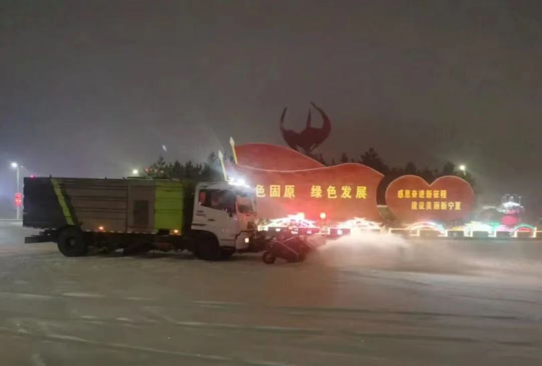 降雪伊始,原州区环卫部门立即启动应急保障机制,坚持“机械清扫为主、人工清理为辅”,调派大型除雪设备对城区主次干道、重点路段开展不间断清雪作业,快速打通城市交通主干线;环卫工人坚守一线,对人行道、过街路口、背街小巷等区域进行精细化清理,及时消除路面湿滑隐患,为市民出行开辟安全通道。