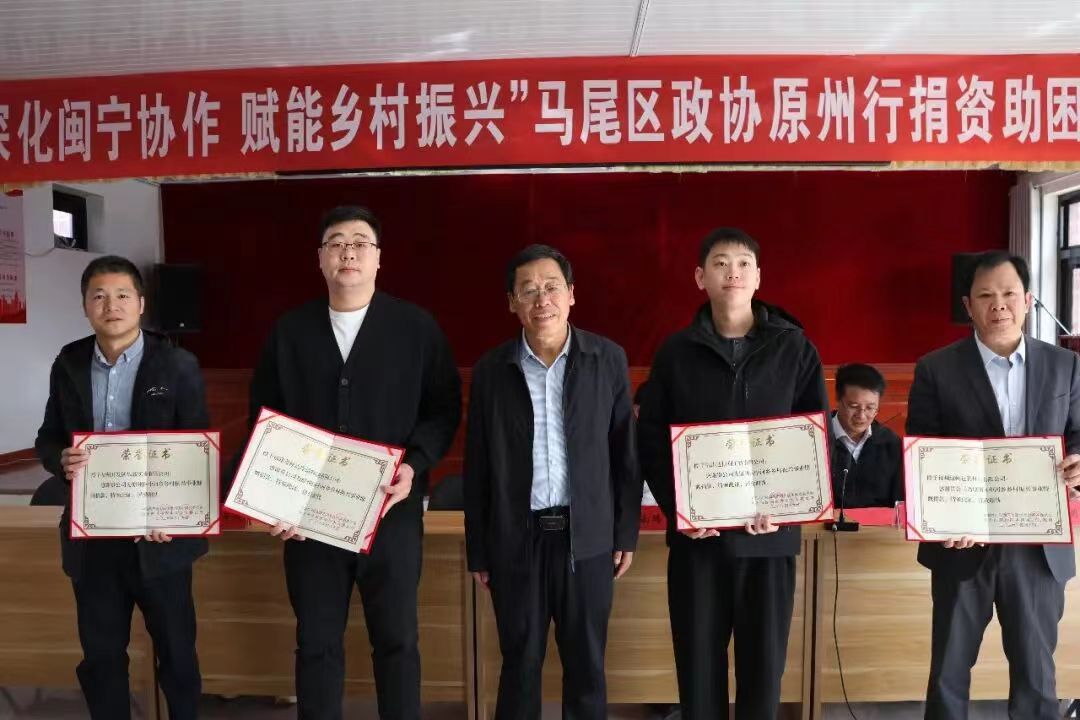 活动现场暖意融融,福建鑫原达冷链物流有限公司、福州绿帆包装材料有限公司、福建达信利工贸有限公司、福州开发区福鑫实业有限公司4家爱心企业向中河乡捐资10万元,用于解决当地困难群众最急需、最迫切的民生问题。原州区政协为爱心企业现场颁发荣誉证书,中河乡党委书记对马尾区政协、闽籍爱心企业致以最诚挚的感谢。
