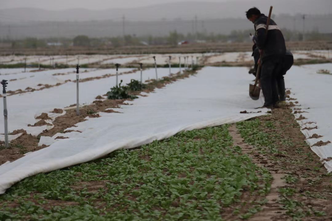 彭堡镇是原州区冷凉蔬菜核心种植基地,当前露地蔬菜长势正旺,防冻保苗工作刻不容缓。镇里提前谋划、主动出击,及时组织镇村干部、种植大户深入彭堡村田间,抢抓有利时机开展覆膜防冻作业。田地里,农户们分工协作、默契配合,铺膜、压土、固定,一道道工序有条不紊,为400余亩露地蔬菜披上“保暖衣”,牢牢守住冷凉蔬菜的产业根基。